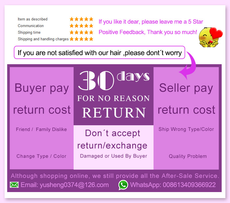Hair Type : 100% Virgin Remy Hair